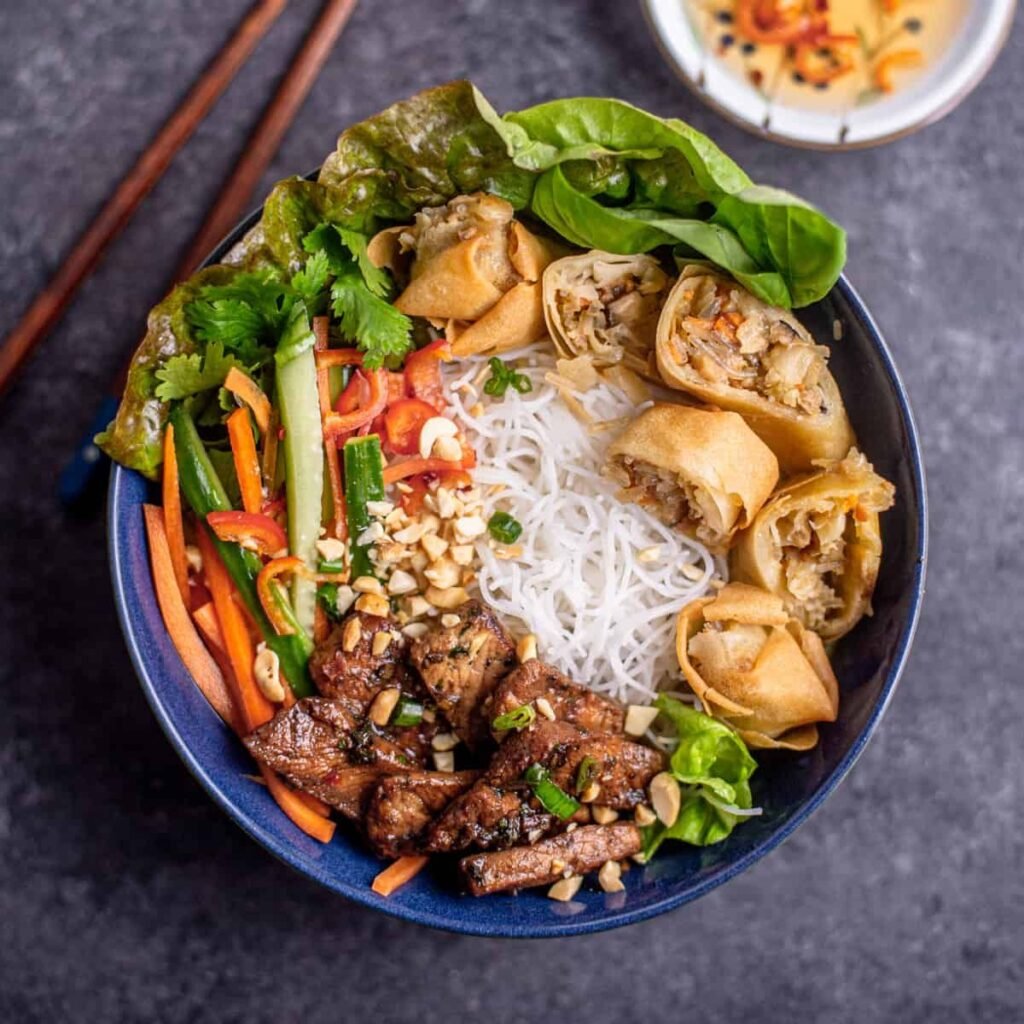 (Bún Bò Nướng, Chả Giò)